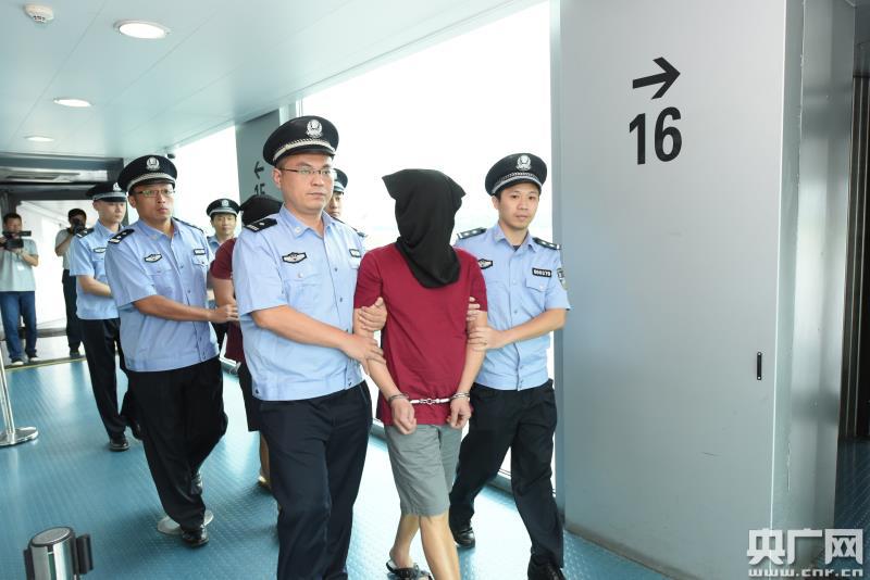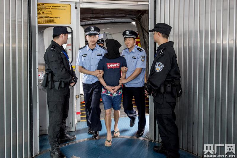 圖為汕頭海關緝私警察將犯罪嫌疑人押解回國。(央廣網發 袁國宏攝)