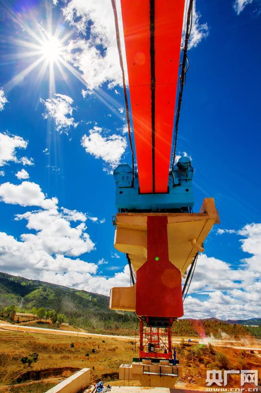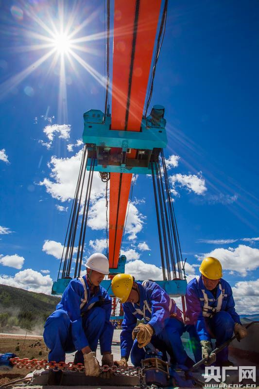 6月11日上午,云南麗江至香格里拉鐵路小中甸2號大橋開始T梁架設(shè),這也是麗香鐵路第一片T梁架設(shè),標志著麗香鐵路建設(shè)取得重要進展。(央廣網(wǎng)發(fā) 陳暢 攝)