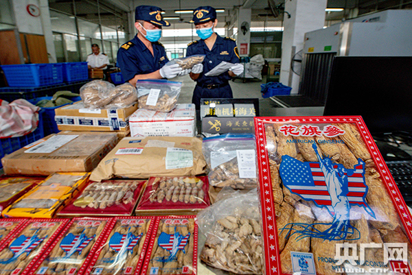 汕頭海關在美國入境郵件中查獲疑似瀕危植物西洋參及制品。(央廣網發 袁國宏攝)