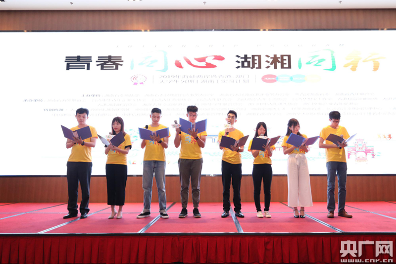 實(shí)習(xí)生代表宣讀《實(shí)習(xí)承諾書》(央廣網(wǎng)發(fā) 圖片由共青團(tuán)湖南省委提供)