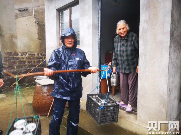 寧波余姚市大嵐鎮(zhèn)冒著風(fēng)雨為獨(dú)居老人送餐(央廣網(wǎng)發(fā) 余姚市委宣傳部供圖)