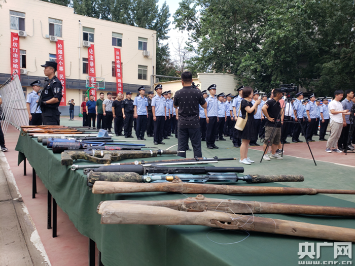 現場展示的部分被收繳槍支(央廣網見習記者 張說地 攝)