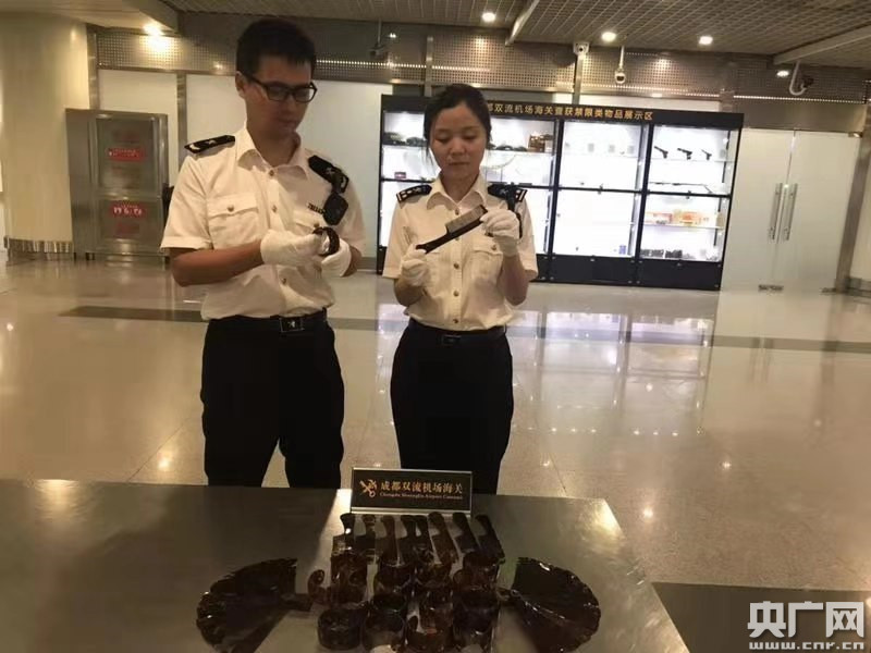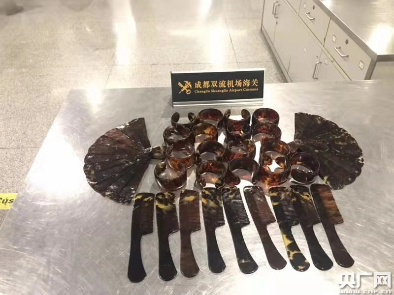 成都海關查獲玳瑁(央廣網發 成都海關供圖)