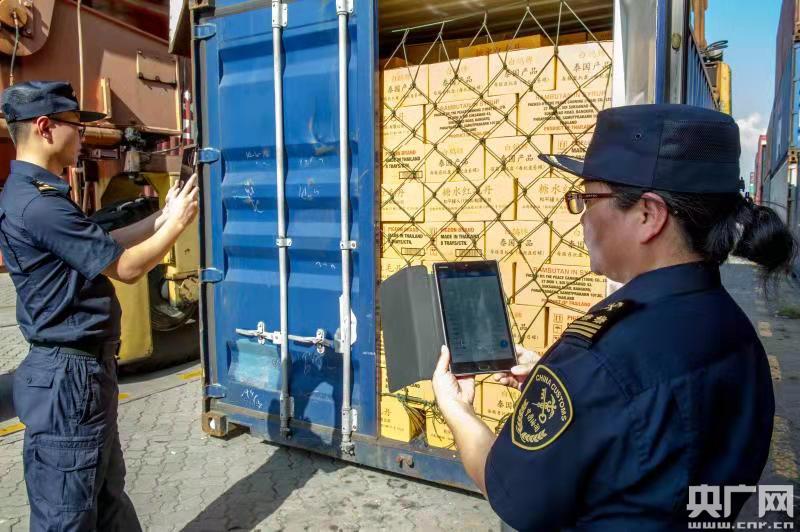 查驗人員檢查貨物外包裝完整情況(央廣網發 通訊員供圖)