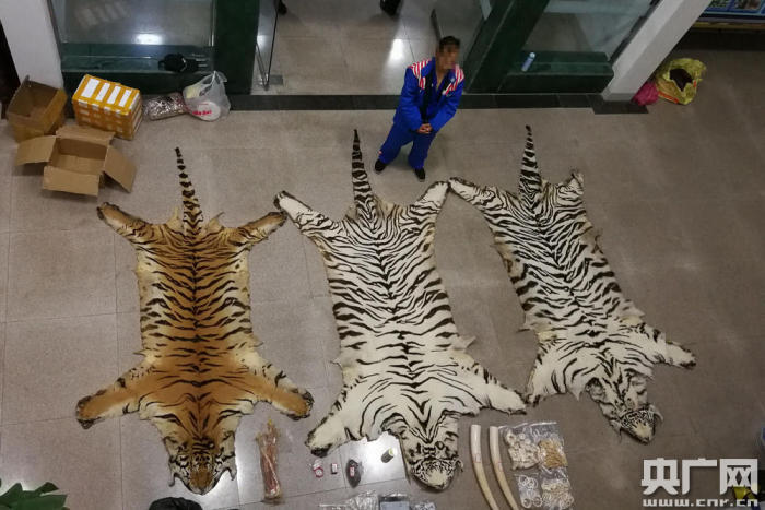 查獲的虎皮及象牙(央廣網發 廣西公安廳供圖)