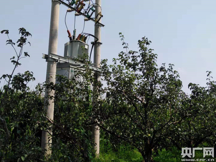 鹽湖區張岳村31號機井2015年已經報廢,新建變壓器設施孤零零站立在果園里,低壓線由機井所在組組長保存。(央廣網發 圖片由國務院第二督查組提供)