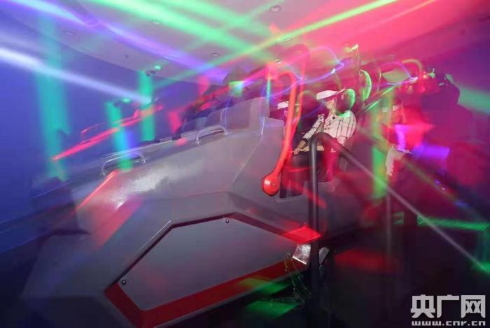 VR騎乘配有8個(gè)座位,市民可以體驗(yàn)“過山車”一般從海河到深海再入太空的視覺體驗(yàn)(央廣網(wǎng)發(fā) 賈成龍 攝)