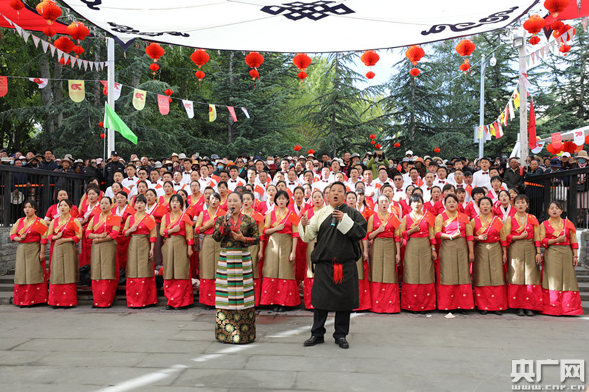 西藏各族群眾高唱愛國歌 禮贊新中國(央廣記者羅布次仁 攝)