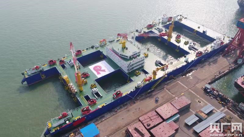 世界首制沉管隧道浮運安裝一體船26日順利交船(央廣網發 通訊員供圖)