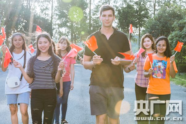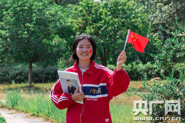 湖南科大學生與國旗合照 為新中國慶生(央廣網發 盧權隆 董思良供圖)