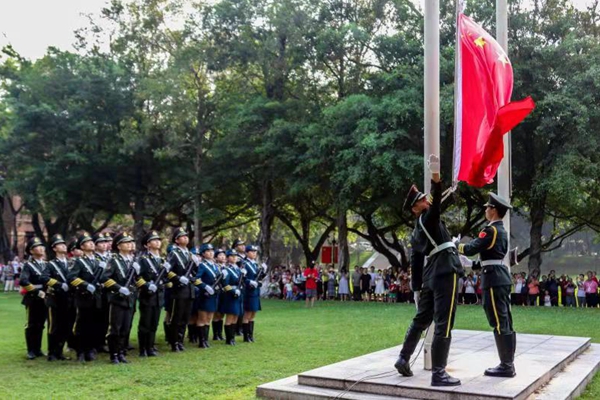 央廣網廣州10月2日消息(記者鄭澍)10月1日上午,中山大學在廣州校區南校園中區草坪舉行升國旗儀式,師生齊唱國歌,在中華人民共和國成立70周年之際,為祖國獻上祝福。