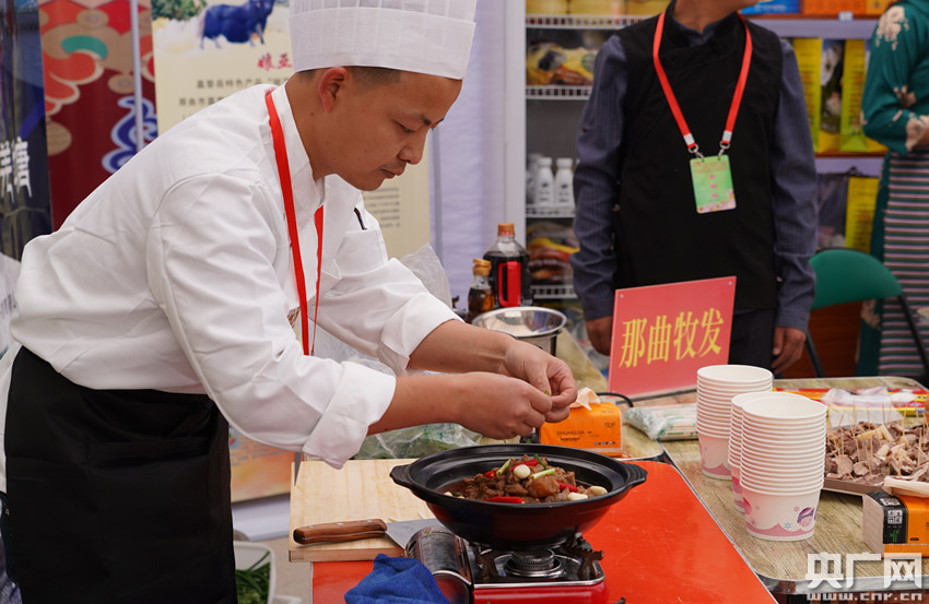 現場正在用牦牛肉制作美食(央廣網記者 普布次仁 攝)