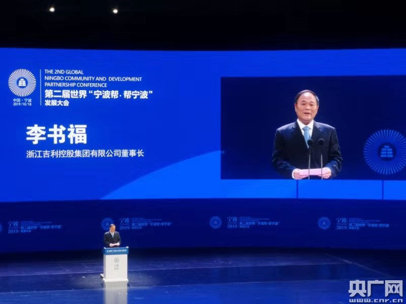 李書福在發(fā)言(央廣網(wǎng)發(fā) 寧波幫發(fā)展大會組委會供圖)