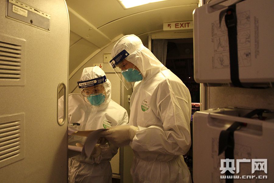 海關工作人員上機檢疫(央廣網發 銀川海關供圖)