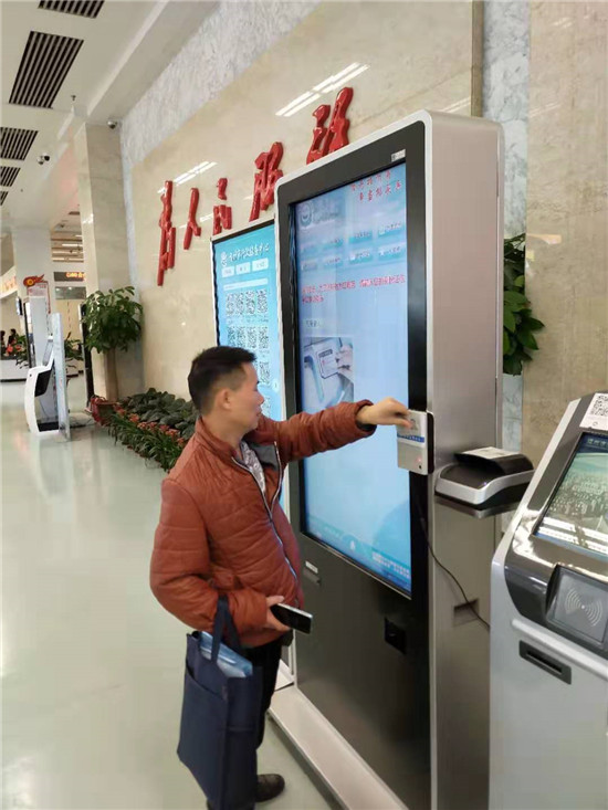 在福州市行政服務(wù)中心辦事大廳,市民正在刷身份證自助取號 攝影 王禮林