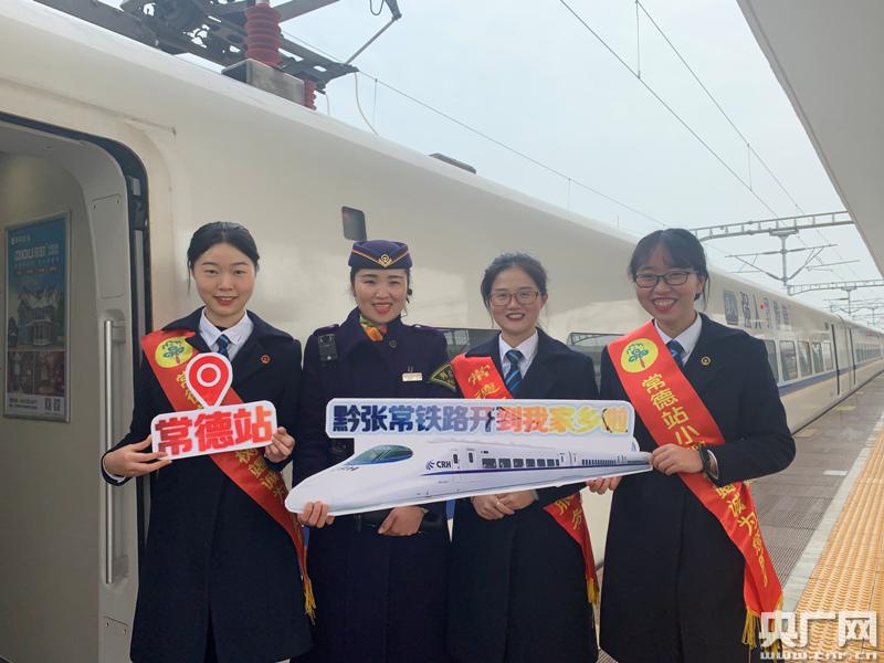 黔張常鐵路開通運營后首趟列車開行至常德站(央廣網發 通訊員 李悅 靖如潔供圖)