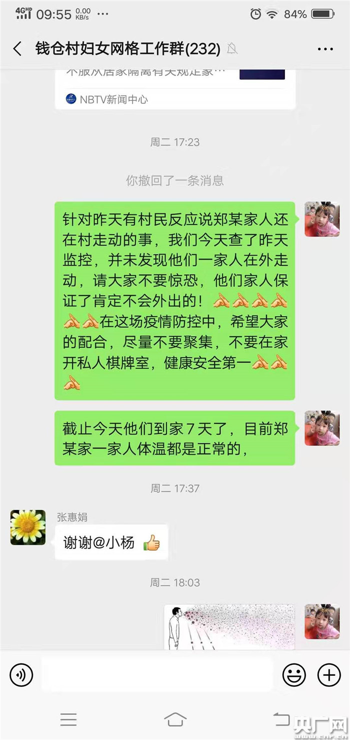 楊密影在微信群里辟謠(央廣網發 象山縣委宣傳部供圖)