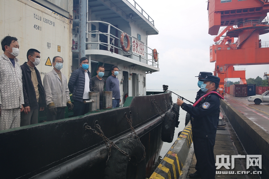 當天下午14時30分,正下著小雨,該站執勤民警已經在碼頭泊位前等候。10分鐘后,“榮航198”號船舶抵港,執勤民警迅速開始查驗,僅用時5分鐘,便完成了全部查驗流程。