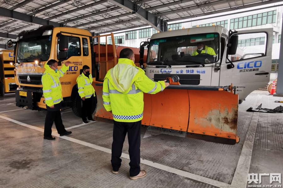 工作人員檢查鏟雪車輛(央廣網(wǎng)發(fā) 浙江臺(tái)供圖)