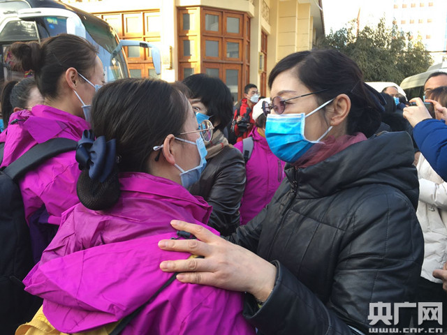 醫療隊員所屬醫院的工作人員也前來送行(央廣網記者 張磊 攝)