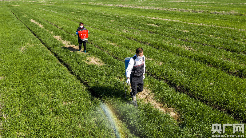而金崗村的蘇少山同樣是一名土地承包大戶,共承包583畝地。2月17日,在蘇少山所承包的麥田內,他和幾名農民戴著口罩在田間清溝排水,做好春耕田間管理工作。看著滿地小麥綠意盎然、生機一片,蘇少山表示:“疫情當前,許多一線的同志都在奮力拼搏,而我作為農業人,也要嚴格按照疫情防控工作的要求,一手抓疫情防控,一手抓農業生產。”