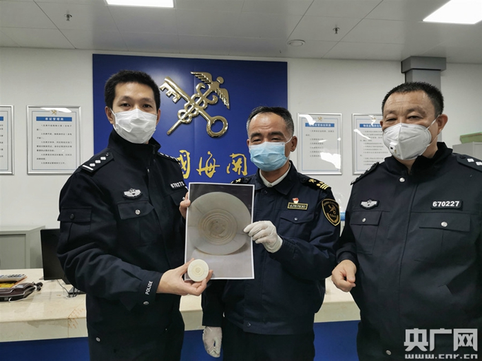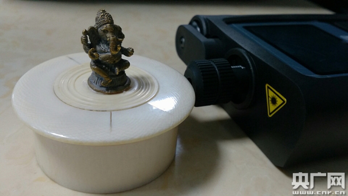 該快件物品申報品名為“餐具蓋”“瓷盤”“瓷杯”各1件。關(guān)員開箱查驗發(fā)現(xiàn),包裹內(nèi)有瓷杯、瓷盤及一個牙白色的小盒子。經(jīng)過肉眼判斷,申報為“餐具蓋”的物品符合象牙制品一般特征,遂進一步使用物像識別儀進行檢測,經(jīng)多次不同角度檢測,均提示為“象牙”。2月14日,經(jīng)華南野生動物物種鑒定中心專業(yè)鑒定,認定為象牙制品,凈重40克。目前該案件已移交緝私部門作進一步處理。