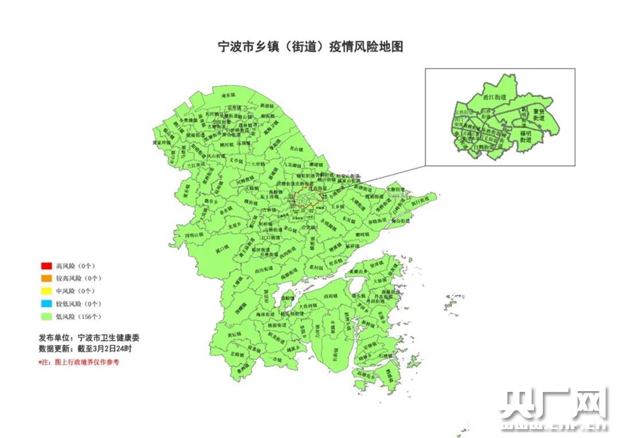 寧波各鄉鎮(街道)疫情風險全部為綠色(央廣網發 寧波市衛生健康委供圖)