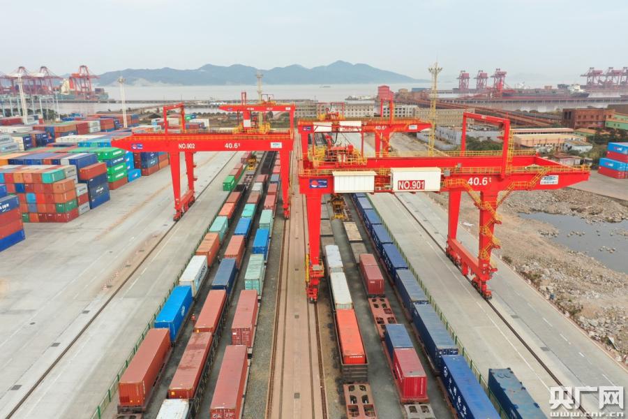 寧波舟山港北侖港區海鐵聯運作業場地(央廣網發 寧波舟山港供圖)