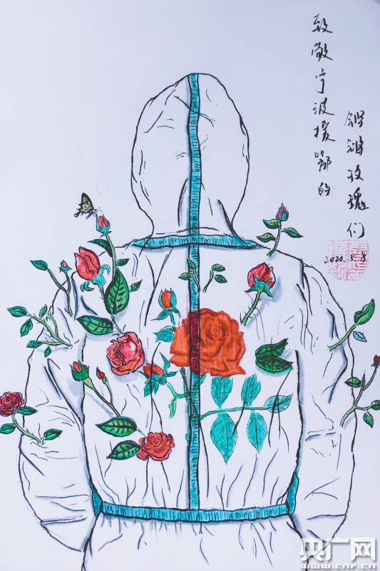寧波支援武漢醫療隊成員葛挺醫生的兒子創作的畫作,獻給一線女神(央廣網發 通訊員趙冠菁 攝)