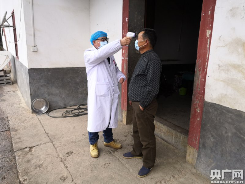 上門給村民測(cè)體溫(央廣網(wǎng)發(fā) 五峰衛(wèi)計(jì)局供圖)