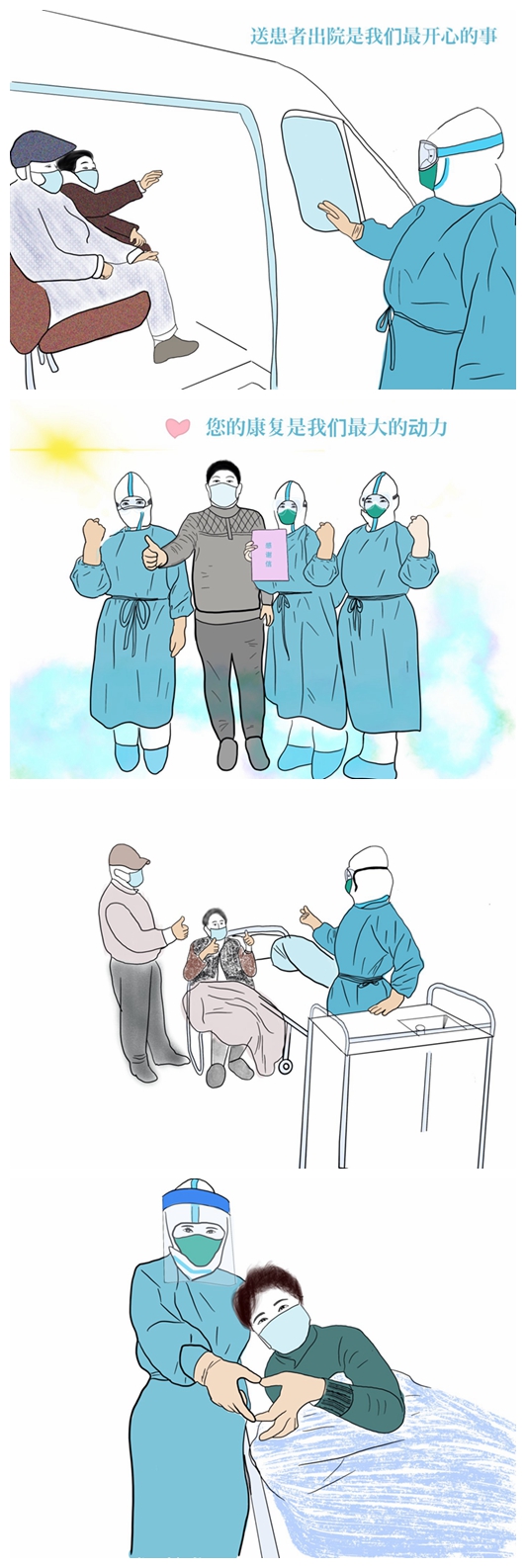 截至3月13日,作為廣東省第一批援助武漢醫療隊其中一員,珠江醫院呼吸與危重癥醫學科護士于麗麗已經支援武漢50天了。平時就很喜歡畫畫的她,在工作之余回到酒店,便用手繪漫畫記錄自己和“戰友”們的援漢點滴。