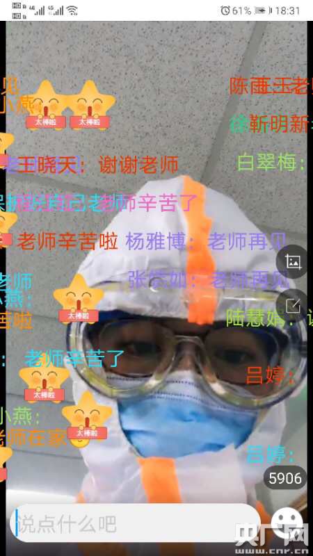 “同學們,打開這個門,我們就進入污染區了,與新冠的斗爭也就正式開始了!我們的翁菲菲老師也早已做好了準備,后面的實踐教學將由翁菲菲老師帶領大家繼續進行。”在同學們熱情的感謝之后,栢玲將直播交給了翁菲菲。