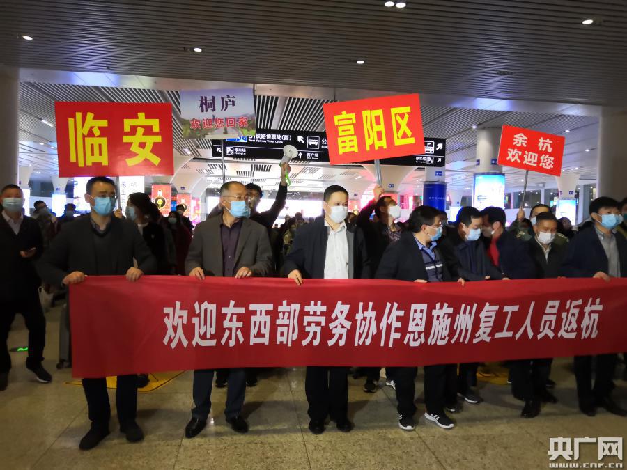 首趟湖北恩施杭州勞務協作扶貧專列今晚到達杭州(央廣網發 杭州市人力社保局供圖)