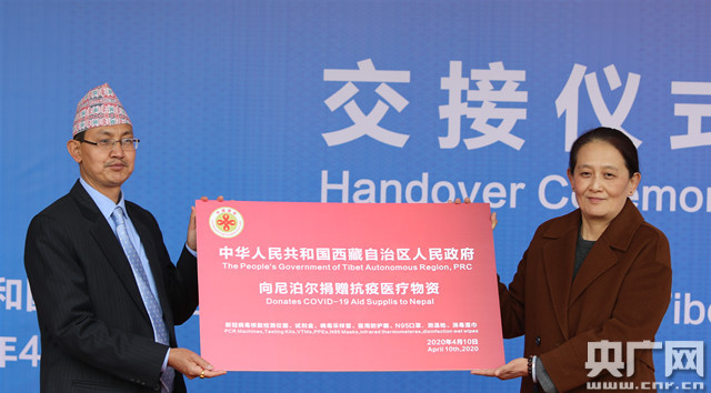 央廣網拉薩4月10日消息(記者普布次仁 見習記者王宇)今日(10日)下午,西藏自治區人民政府向尼泊爾政府捐贈抗擊新冠病毒肺炎疫情醫療物資交接儀式在拉薩舉行,物資將第一時間由陸路通道運往尼泊爾。