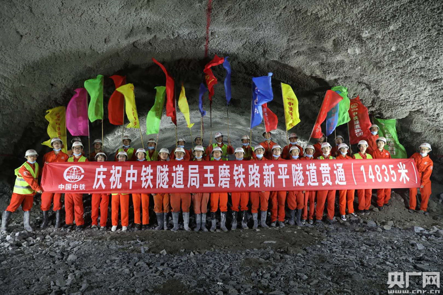 溜坍涌突極高風險新平隧道貫通施工人員歡慶(央廣網發 徐章位 攝)