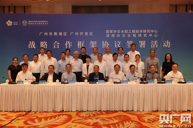 廣州市黃埔區、廣州開發區與國家雜交水稻工程技術研究中心-湖南雜交水稻研究中心簽署戰略合作框架協議。(央廣網發李建均 方偉文 攝 )