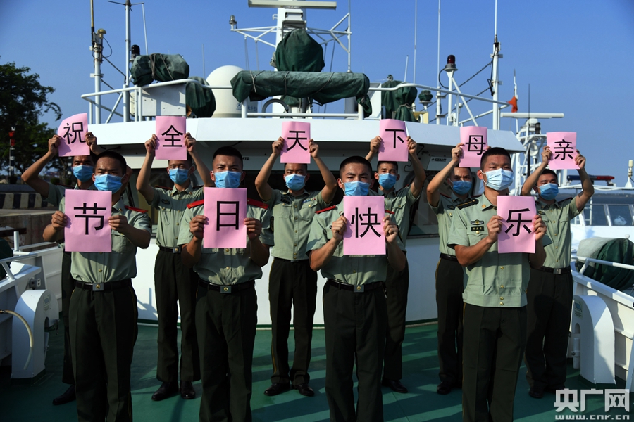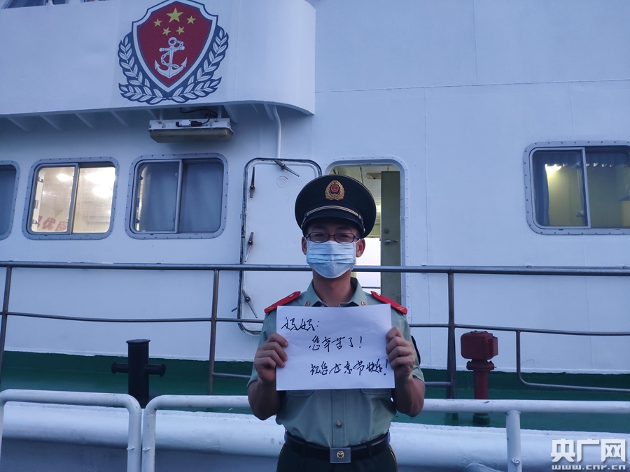 在海警大洲艇上,海警人以集體的名義向母親送上節(jié)日祝福,祝福所有的媽媽身體健康,節(jié)日快樂。