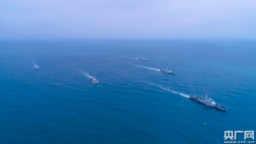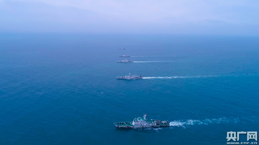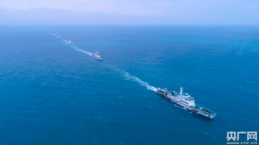 圖為汕頭海警局艦艇艦艇雙橫隊航行(央廣網發 汕頭海警局供圖)
