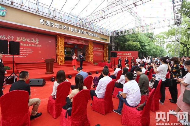 對(duì)此,西湖區(qū)政府黨組成員、副區(qū)長柴聞樂表示,直播基地的落成,是杭州市“云上杭行”直播電商季在助農(nóng)領(lǐng)域的重要嘗試,也是杭州市開展對(duì)口幫扶工作的一個(gè)全新渠道。希望這個(gè)直播基地通過探索“電商+直播+創(chuàng)業(yè)”發(fā)展新模式,搭建電商直播技能提升平臺(tái)、農(nóng)產(chǎn)品展銷平臺(tái)、交流合作平臺(tái),結(jié)合線下場館增強(qiáng)體驗(yàn)效果,以積極健康的網(wǎng)絡(luò)直播方式,傳播杭州電商發(fā)展的新魅力,培育出一批網(wǎng)絡(luò)直播達(dá)人,并希望這個(gè)基地能夠成為全國對(duì)口協(xié)作項(xiàng)目的新標(biāo)桿。