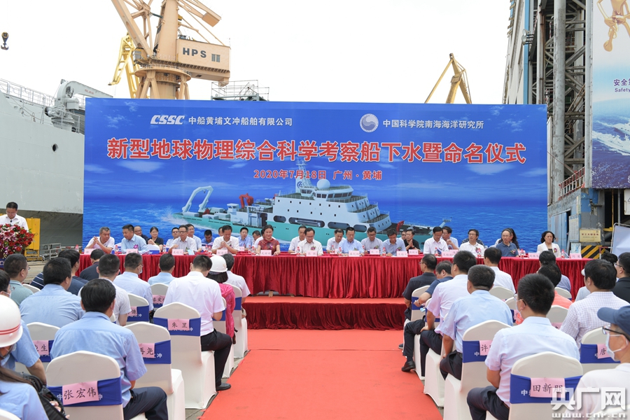 新型地球物理綜合科學考察船下水暨命名活動現場(央廣記者 官文清 攝)