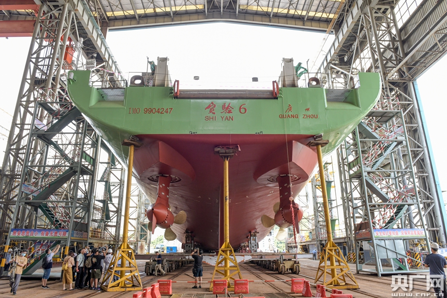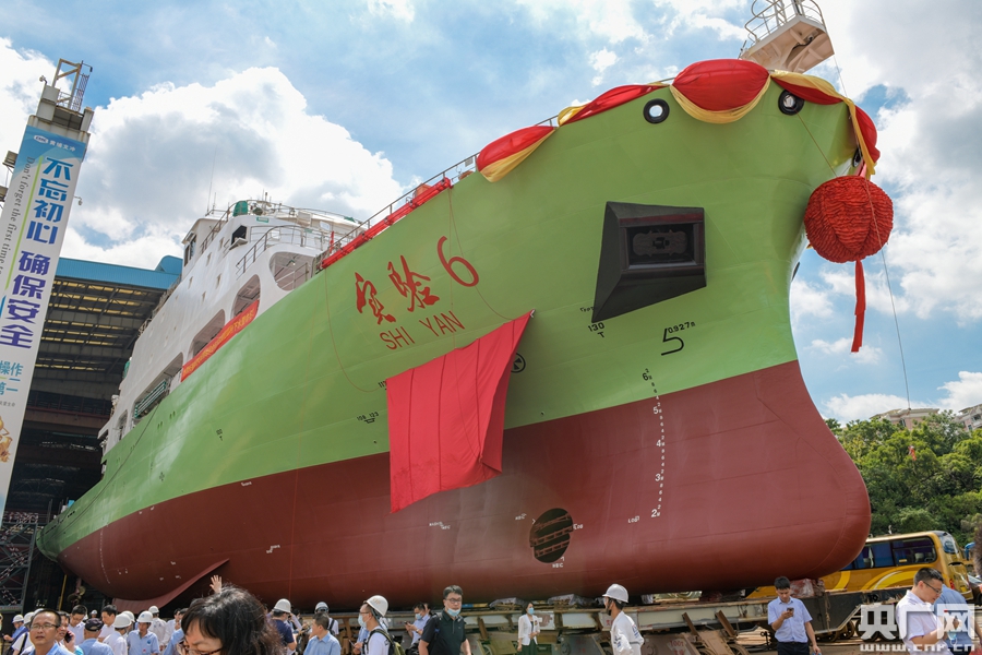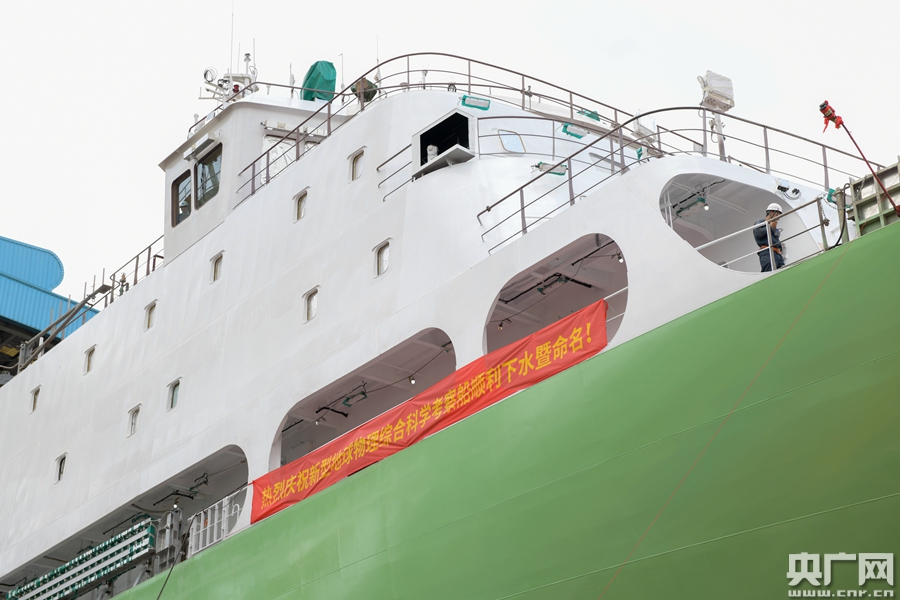 新型地球物理綜合科學考察船命名為“實驗6”(央廣記者 官文清 攝)