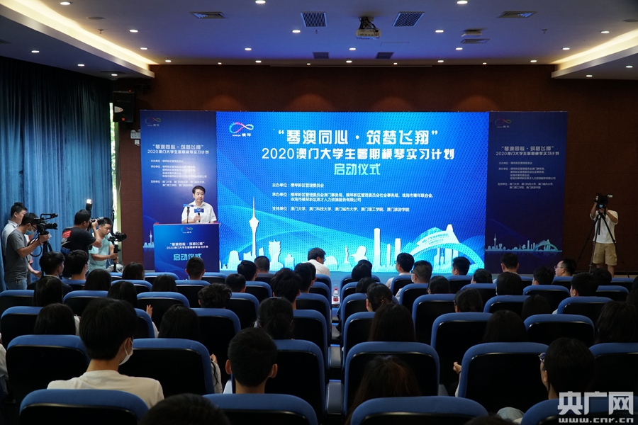 央廣網(wǎng)珠海7月20日消息(記者郭翔宇 通訊員劉心宇)今天,2020年“琴澳同心·筑夢飛翔”澳門大學(xué)生暑期橫琴實習(xí)計劃啟動儀式在橫琴·澳門青年創(chuàng)業(yè)谷舉行,橫琴迎來近百名澳門大學(xué)生開展為期四周的暑期實習(xí)之旅。橫琴新區(qū)黨委副書記李偉輝、珠海市臺港澳事務(wù)局副局長杜小平、珠海市青年聯(lián)合會副主席王迎奎,橫琴新區(qū)相關(guān)部門及用人單位代表和實習(xí)生約130人出席啟動儀式。