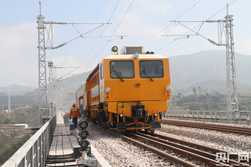 “新建的鐵路不是立馬就能讓火車在鐵道上奔跑的,還需要通過大型養路設備進行線路整修,才能達到列車上線運行的標準。”中國鐵路昆明局集團昆明工務機械段現場作業負責人李飛介紹,“剛安放好鋼軌的線路還存在著底部石砟不足,鋼軌平直度不夠,軌道間距不一等問題,只能供施工列車慢速通行,需要經過多次整修,才能使線路達標,滿足客貨列車開行條件。”
