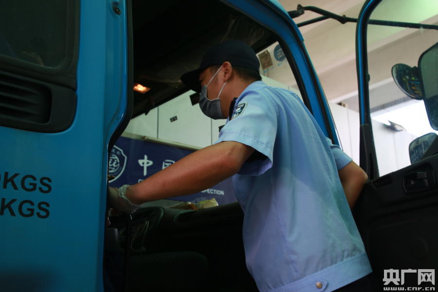 16日正式通車當天,茂盛圍邊檢站根據執勤方案,加派警力,有序高效應對貨車車流高峰。早晨六點整,當班執勤民警嚴陣以待,迎接正式通車后第一批經跨境口岸入境的供澳鮮活商品貨車。指揮車輛、攀爬貨車、檢查車輛、驗放司機,短短的半個小時下來,民警的手套黑了,后背也全都濕透了,平時酷愛健身的民警小王表示:“上勤半小時,頂過擼鐵一小時!”但他們仍堅持工作在超過35度高溫、充滿貨車尾氣的車道:“雖然工作很辛苦,但是能為貨車司機們提供高效便捷的通關服務,我們覺得很開心!”