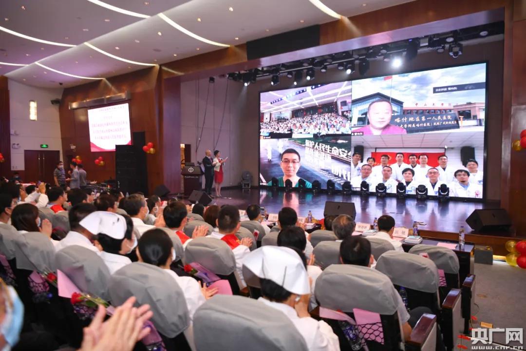 大會現場連線了援疆抗疫隊員管向東、司向以及援邊壩縣人民醫院醫療隊員。管向東說,從武漢到黑龍江再到新疆,感受到了國家的強大力量,表示將不辱使命、堅決完成任務。
