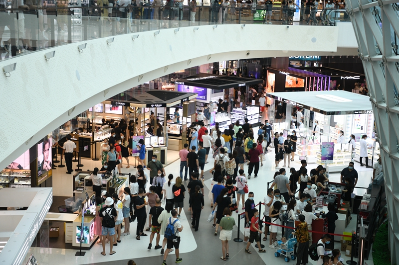 中免集團(tuán)三亞市內(nèi)免稅店有限公司市場(chǎng)部總監(jiān)助理趙晶介紹,目前免稅城日均客流量在3萬(wàn)人左右,已經(jīng)成了三亞旅客必打卡的“景點(diǎn)”。“之前暑期最高客流量能夠達(dá)到4萬(wàn)人,比往年春節(jié)期間的客流量還要多。”趙晶表示,三亞國(guó)際免稅城實(shí)實(shí)在在地感受到了政策帶來(lái)的紅利。