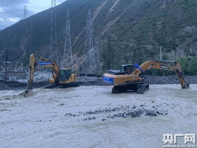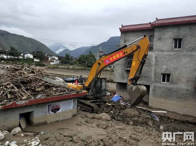 甘肅省水電工程局公司搶險救災突擊隊在舟曲縣曲告納鎮木耶村進行河道清理(央廣網發 甘肅省水利廳供圖)