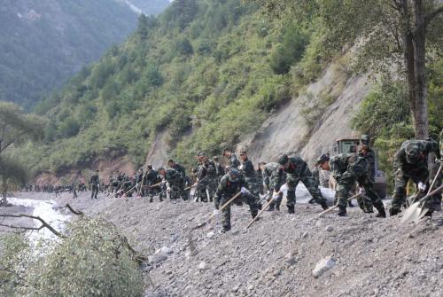 截止8月30日,任務(wù)部隊(duì)已經(jīng)在舟曲縣莫洛村、鐵壩村、舟曲縣藏族中學(xué)、X422縣道4個(gè)任務(wù)區(qū)展開(kāi)搶險(xiǎn)救災(zāi)行動(dòng),累計(jì)清理路面4650米,加固堤壩900米,疏通清理河道300米,清理房屋19間,清理淤泥532立方米,清理操場(chǎng)200平方米,搶通道路25米。