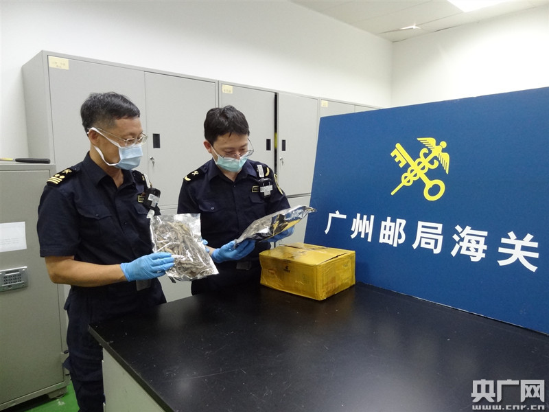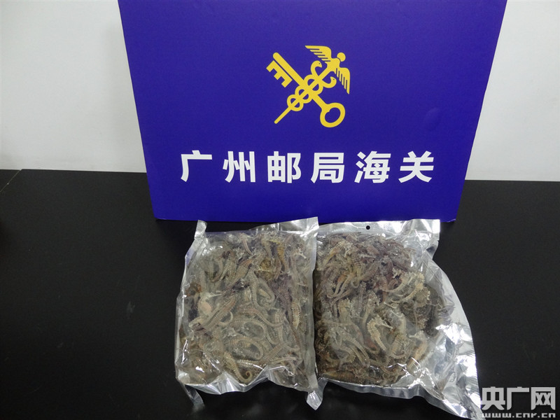 圖為廣州海關在進境郵遞渠道查獲瀕危動物海馬干制品(央廣網發 劉小琴 攝)