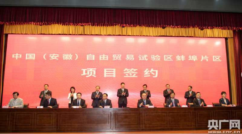 中國(安徽)自由貿易試驗區蚌埠片區首批項目簽約。(央廣網發 陳昂 攝)